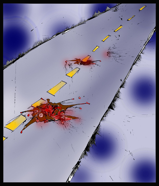 At 9:50am, by forces unbeknownst to ourselves, we reached our destination; a small cardboard facsimile of Jesus had guided us there. Everything seemed to be in order.....giant robots, underpasses, overpasses, signs, desert life, a plethora of stucco roofs, billboards just like we have, a hospital, the Seattle space needle, oh yes...and Walmart. Out of nowhere we received a sign from a higher place. Rodger Whittaker was in Vegas, and we were there to give him hell. After approximately 24hours of psychosis ridden driving, we decided we needed showers and a short rest...ACCOMMODATIONS! We first tried the Luxor (a great black shiny pyramid). They were obviously deranged. They inconspicuously handed us a slip of paper with their rate for the day scrawled on it. The number was $260.00. We had no need for their insipid bits of plasticity. We then scuttled about in the worst haze trying to find sanctuary. The Travellodge was her name, in all her glory, with bible in the drawer and everything. We unloaded the shark, bathed, nourished, and my cohorts drifted off into slumber in no time, as 3 hours of tossing and turning generated a myriad of peculiar thoughts through my twisted head. Inducing some sort of lucid layer, the time had come to begin the scientific research. The complex process of clothing and outside preparations was hindered by road fatigue and sleep deprivation. Strange vibrations, kind of menacing, creepy and slithery, don’t quite understand them yet...further investigation necessary......