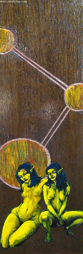 8 x 24 inches.....pen, ink, colored pencil, acrylics, glue, & varnish on paper on shelving