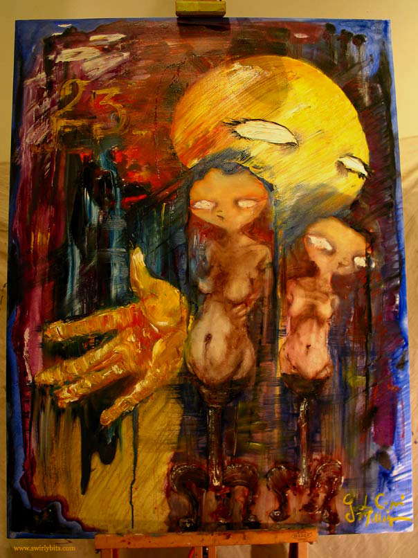 3 x 4 feet.....5 hour live painting at a PAC (pacific art collective) session in san jose, CA on september 24th, 2004 from 6pm-11pm